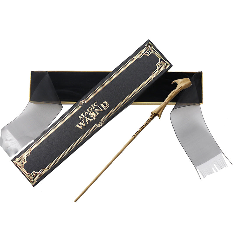 The Dark Lord's wand was 13½" long and belonged to Tom Riddle, the wizard who later became known as Lord Voldemort. The wand was made from yew with a phoenix feather core. The phoenix feather core was from Fawkes, Dumbledore's phoenix, and Harry Potter's and Tom Riddle's wands were both made from feathers from him. It was manufactured by Garrick Ollivander and was the "brother" or "twin" of the wand of Harry Potter, as their wands share cores. It was with this wand that Riddle murdered James and Lily Potter and countless others, including Muggle Frank Bryce, Amelia Bones, and Ministry of Magic ex-employee Bertha Jorkins. On Voldemort's orders, Peter Pettigrew used this wand to kill Cedric Diggory in June of 1995 as well. Harry Potter Magic Wand with Ollivanders Wand Box and a Metal Core for extra strength and durability. Perfect prop for parties, fancy dress and hobby. High quality wand for die-hard fans with metal core.